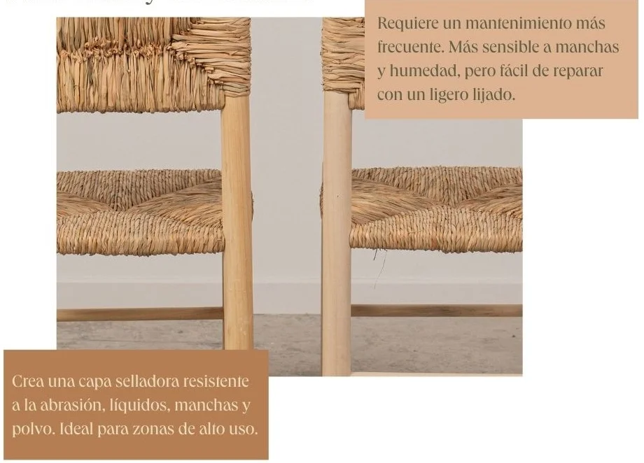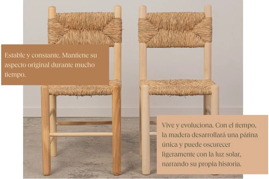 Las sillas de enea y madera son una fantástica alternativa a las sillas de plástico.
