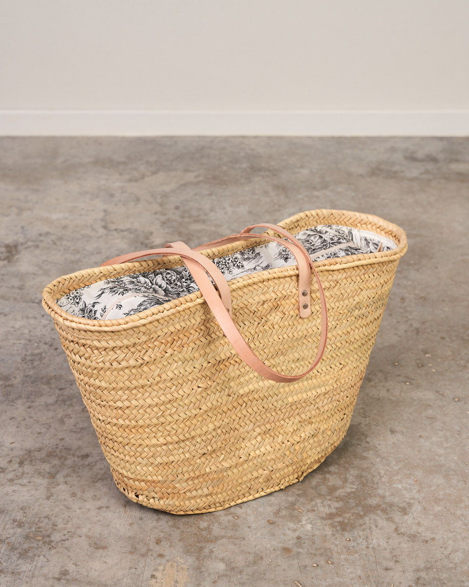 Es un bolso con dos asas de cuero remachadas a la palma, de tamaño ideales para colgarlo del hombro.