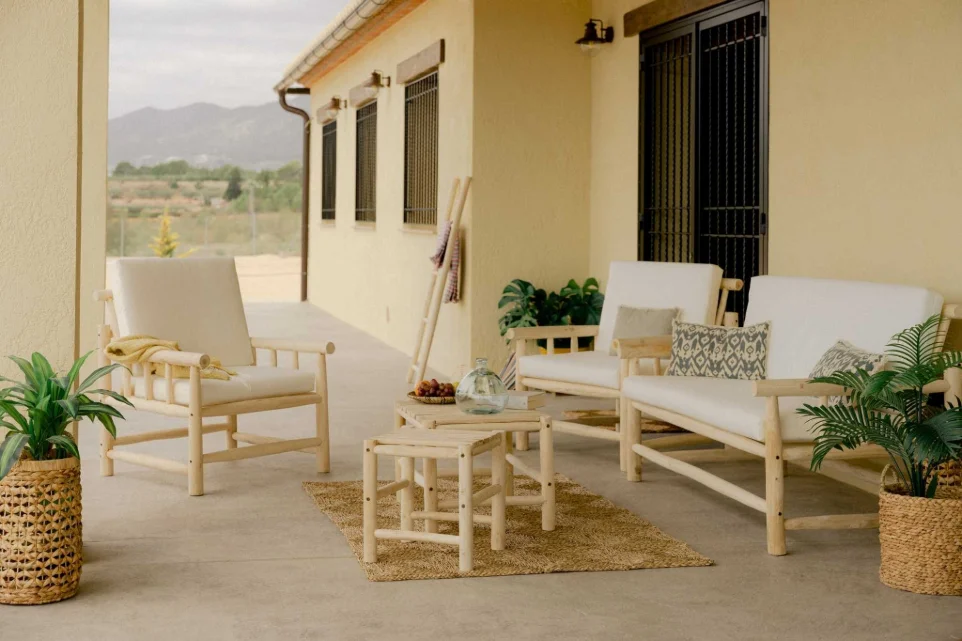 Sí, los sillones de mimbre para exterior son una opción idónea para terrazas y jardines. Recomendamos cubrir los sillones en caso de lluvia para evitar causar defectos en la madera.